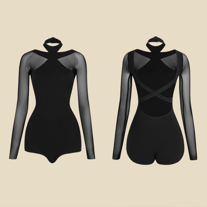 Z Girls Black Long Sleeve Backless Latin Dance Tops Dance Wear Training Performance
