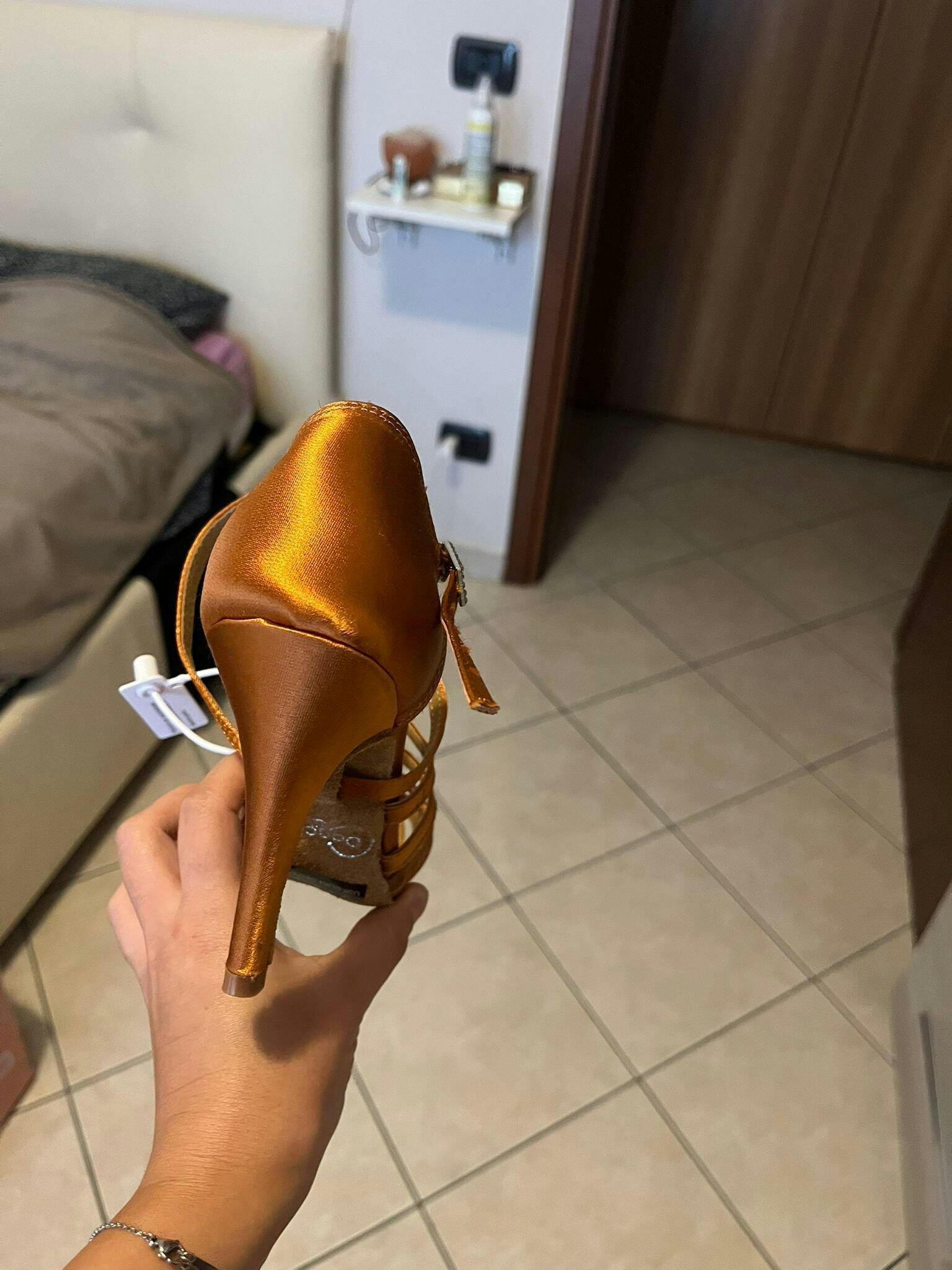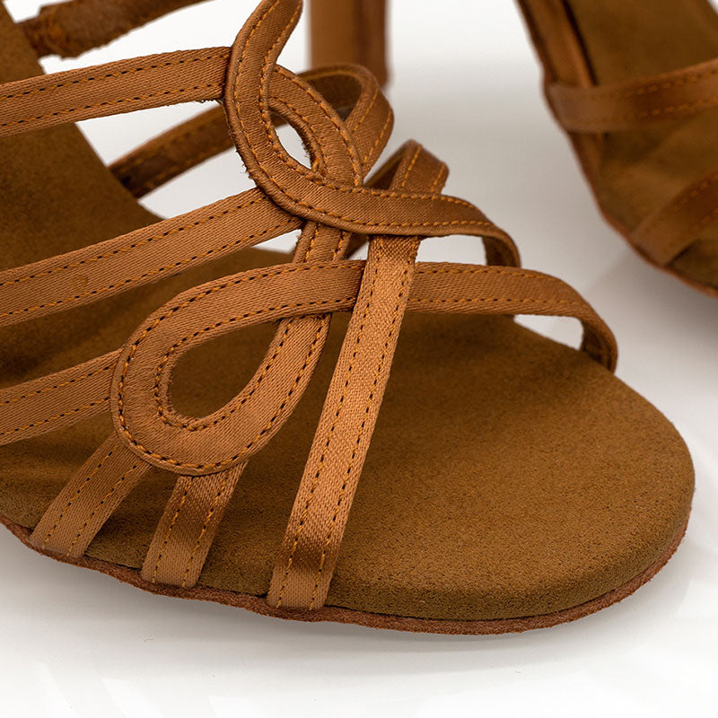 Women's Brown Satin Customized Heel Latin Dance Shoes Dancing Heels