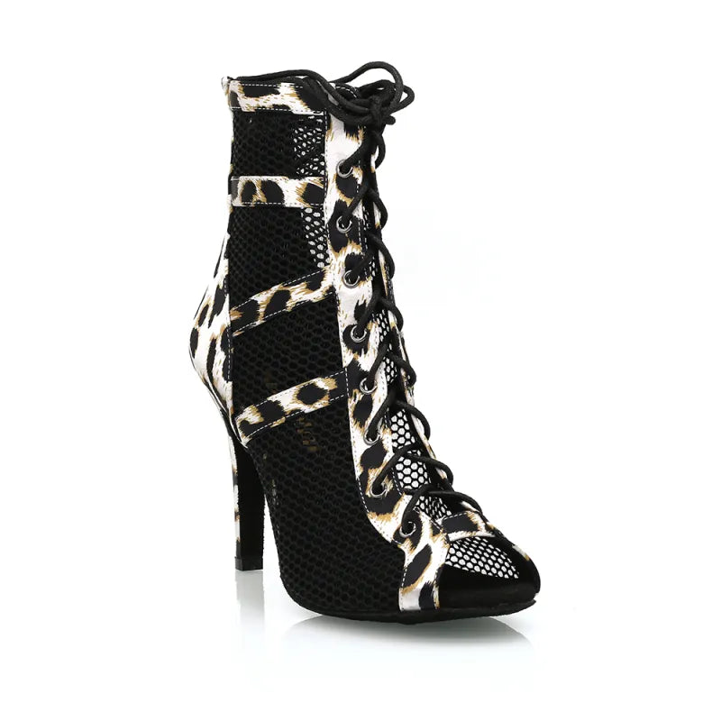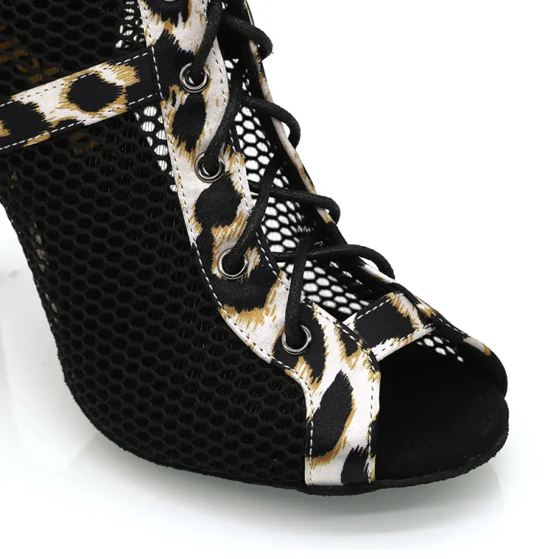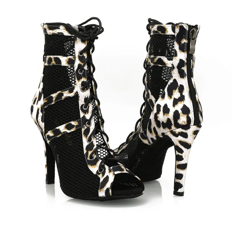 Women's 9.5cm Heel Peep Toe Rubber Sole Jazz Shoes Dance Boots Salsa Dance Shoes