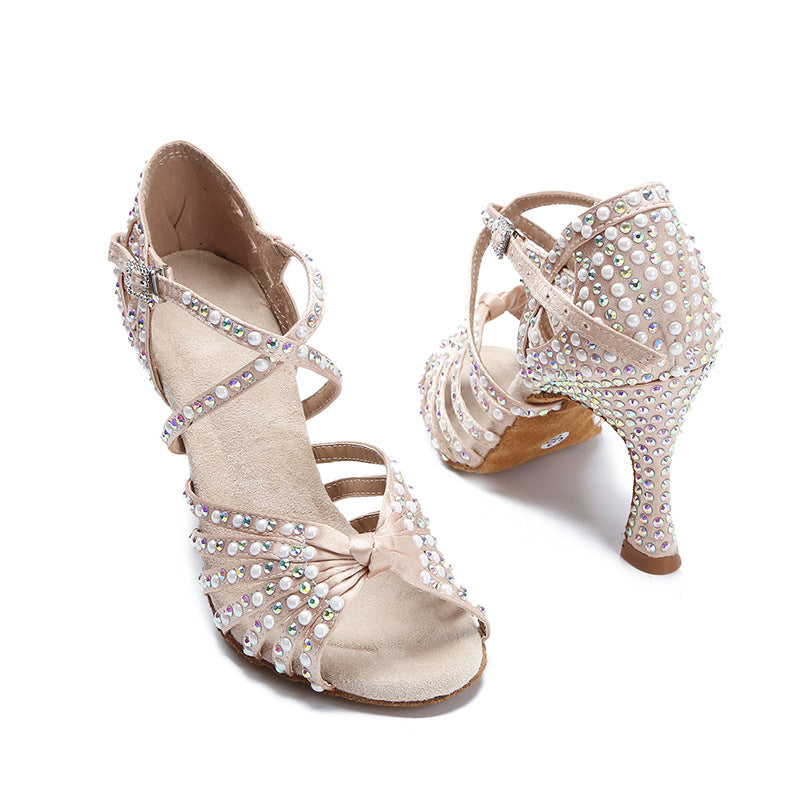 Women's Satin Rhinestone Customized Heel Latin Shoes Salsa Shoes Ballroom Dance Shoes