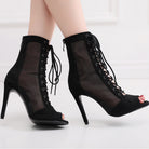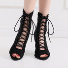QJW Women's Customized Heel Rubber Sole Jazz Shoes Lace-up Dance Heels Boots