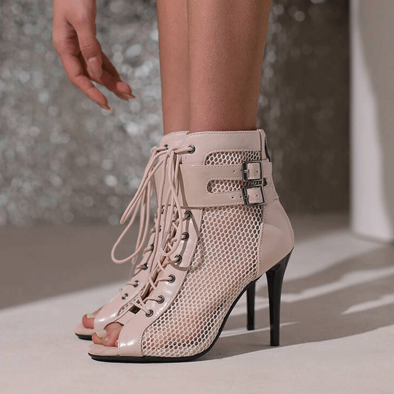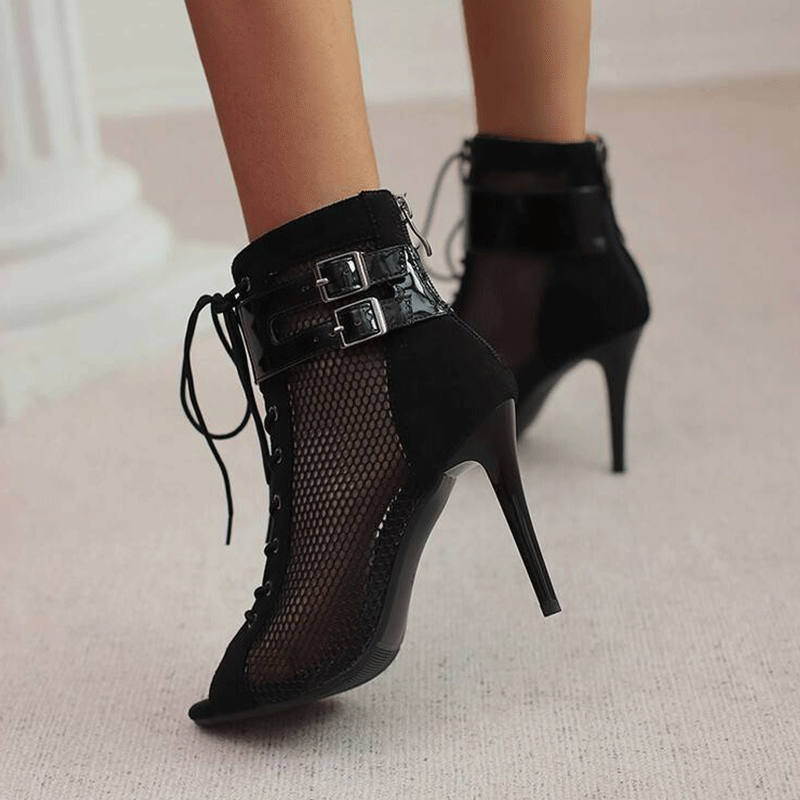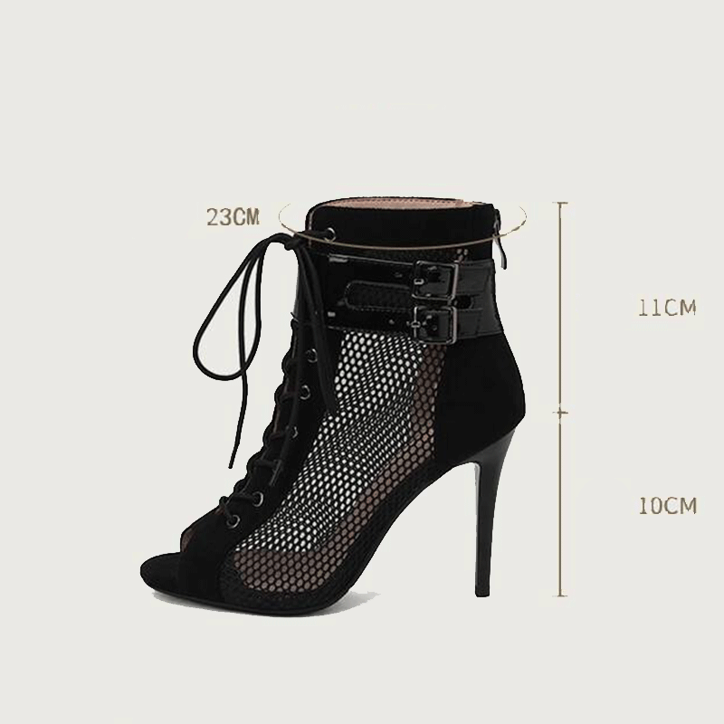 AJ Women's 10 cm Heel Rubber Sole Leatherette Jazz Shoes Open Toe Dance Heels Boots