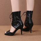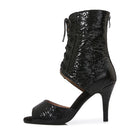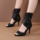 Women's Black Customized Dance Heels Rubber Sole Peep Toe Lace-up Jazz Shoes Dance Boots