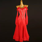 Customisable-Women's Red Long Sleeve DanceWear Ballroom Dance Dress