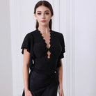TID Women's Black Ballroom Bodysuit Dance Tops Dance Wear