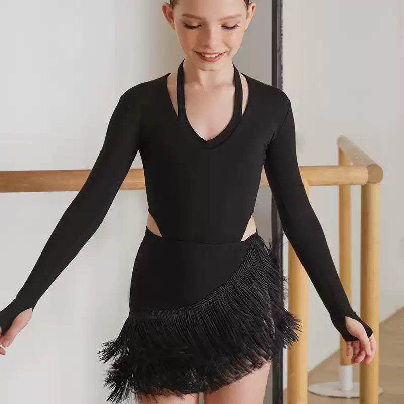 Z Girls Long Sleeve Latin Dance Bodysuit Dance Wear