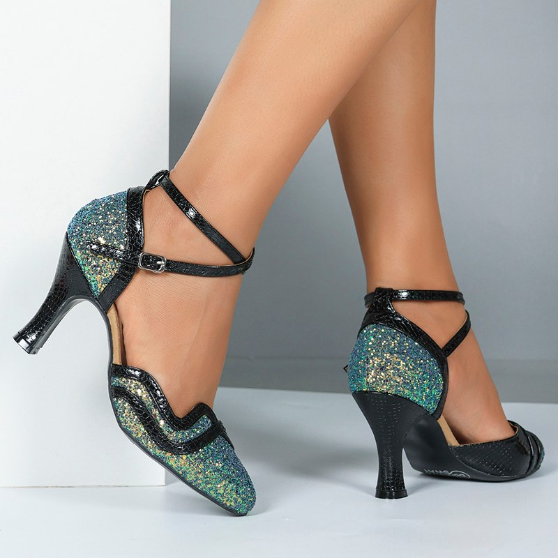 Women's Sparkling Glitter Customized Hee Latin Shoes Salsa Shoes Ballroom Dance Shoes