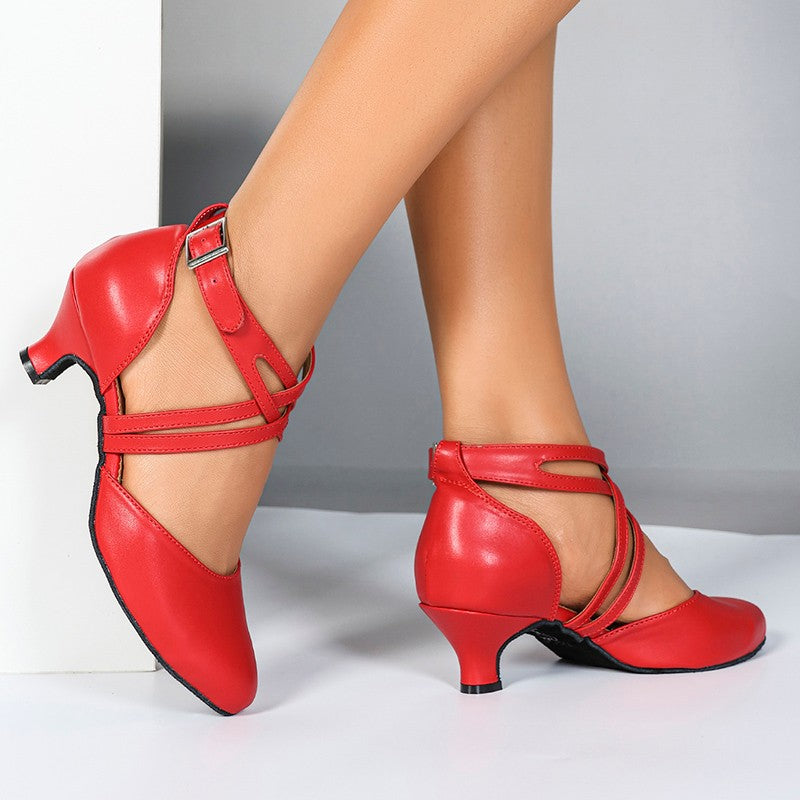 Women's Red Real Leather 5cm Heels Ballroom Dance Shoes Modern Dance Shoes