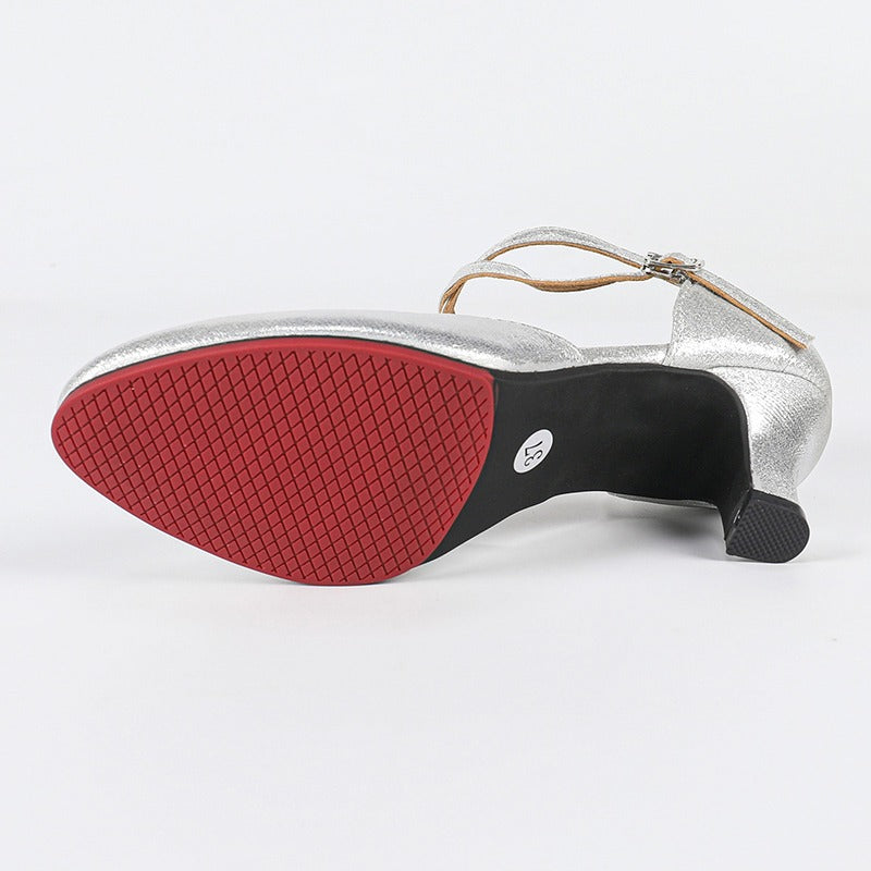 DS Women's Silver Pointed Toe Customized Heel Closed Toe Dance Shoes