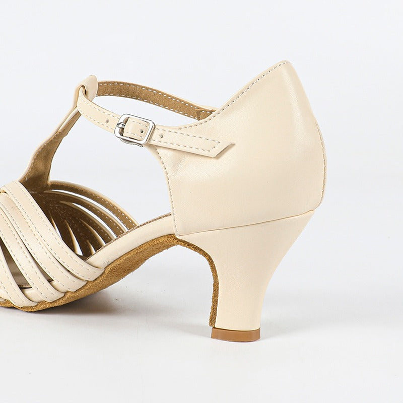 Women's Beige Leatherette 3.5cm Heels Ballroom Swing Dance Shoes