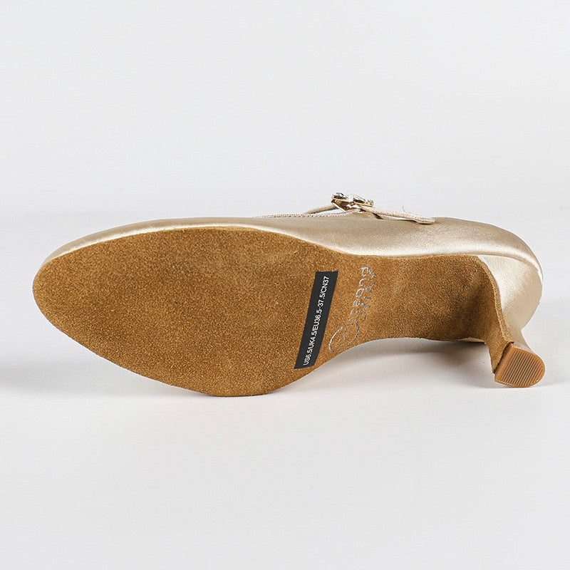 Women's Bronze Satin Customized Heel Modern Ballroom Dance Shoes