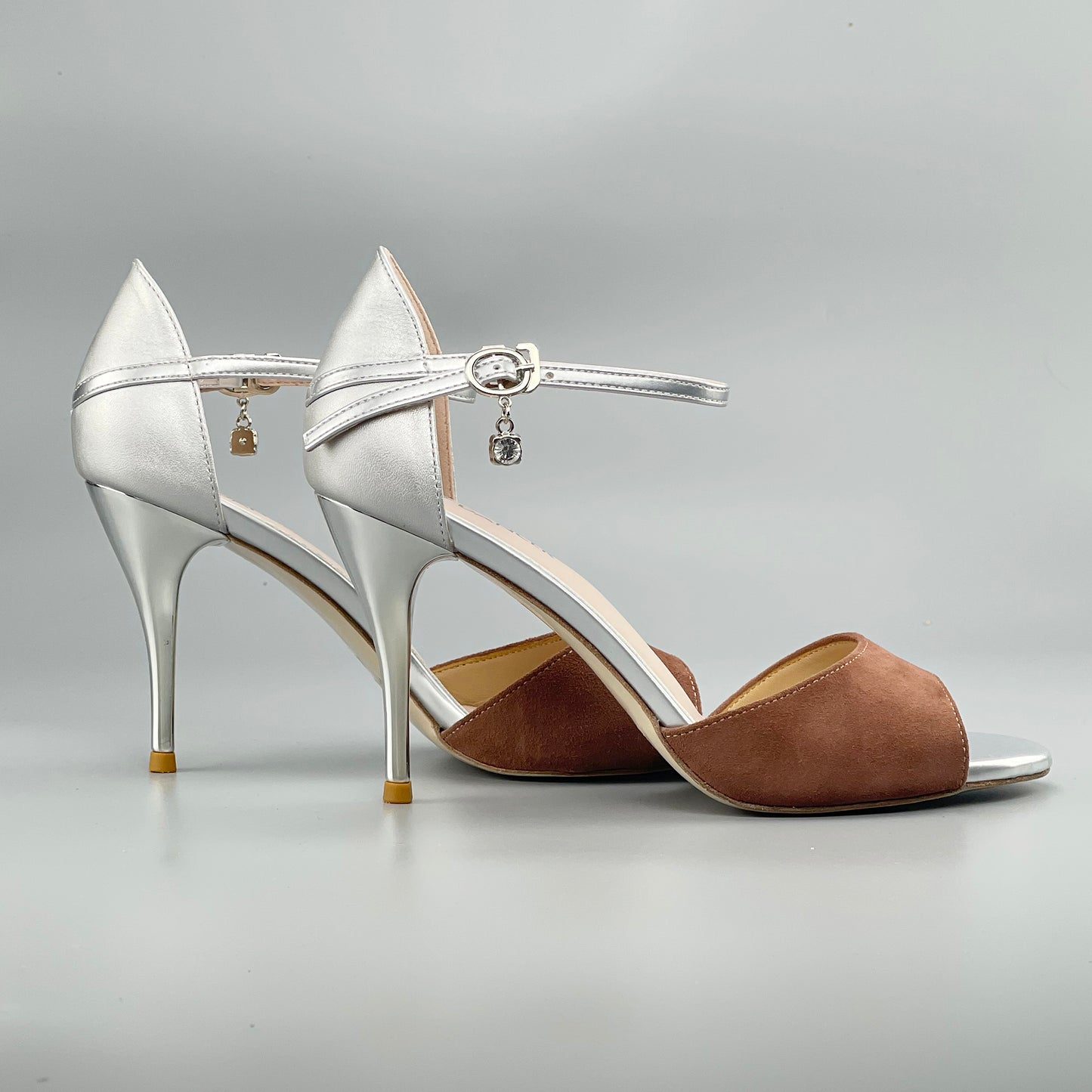SHJ Women's Brown Real Leather 7cm/9cm Heels Dance Tango Shoes