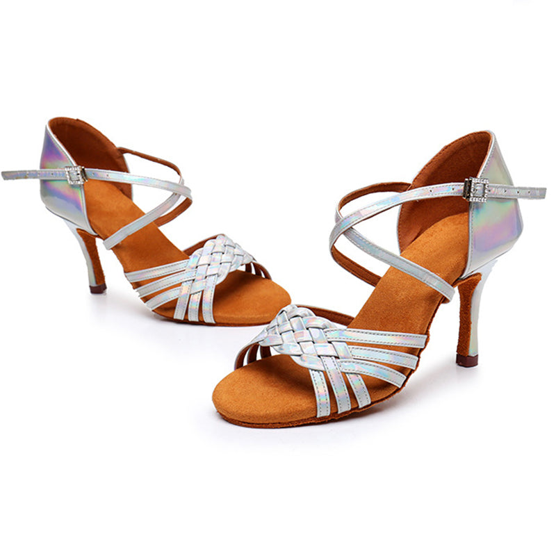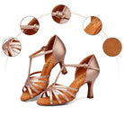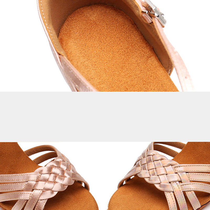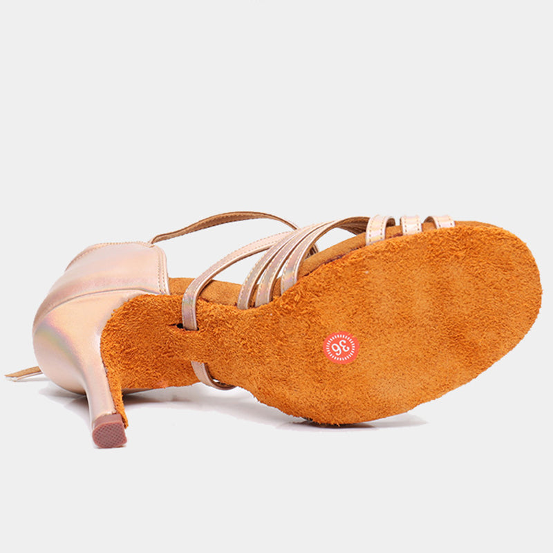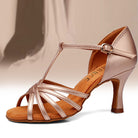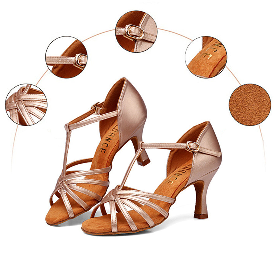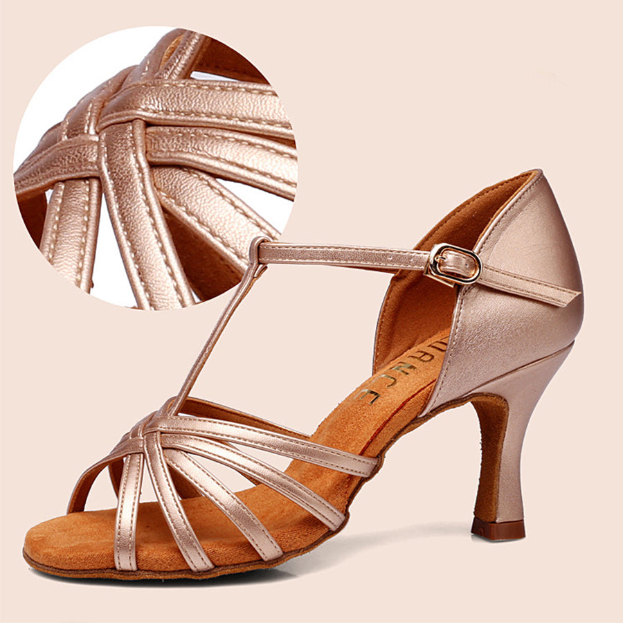 Women's Champagne Leatherette Customized Heel T-Strap Latin Dance Shoes Ballroom Dance Shoes
