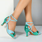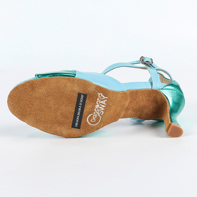 DS Women's Blue PU Customized Heel Latin Shoes Ballroom Dance Shoes