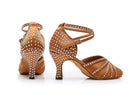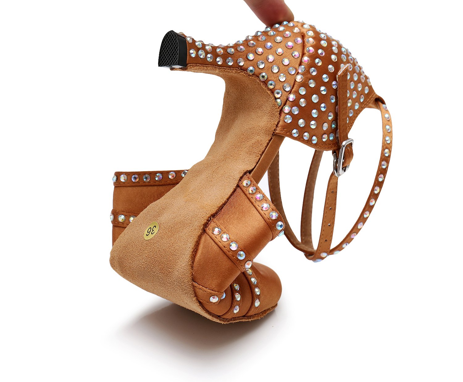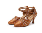 Women's Bronze Satin Customized Heel Modern Shoes Ballroom Dance Shoes