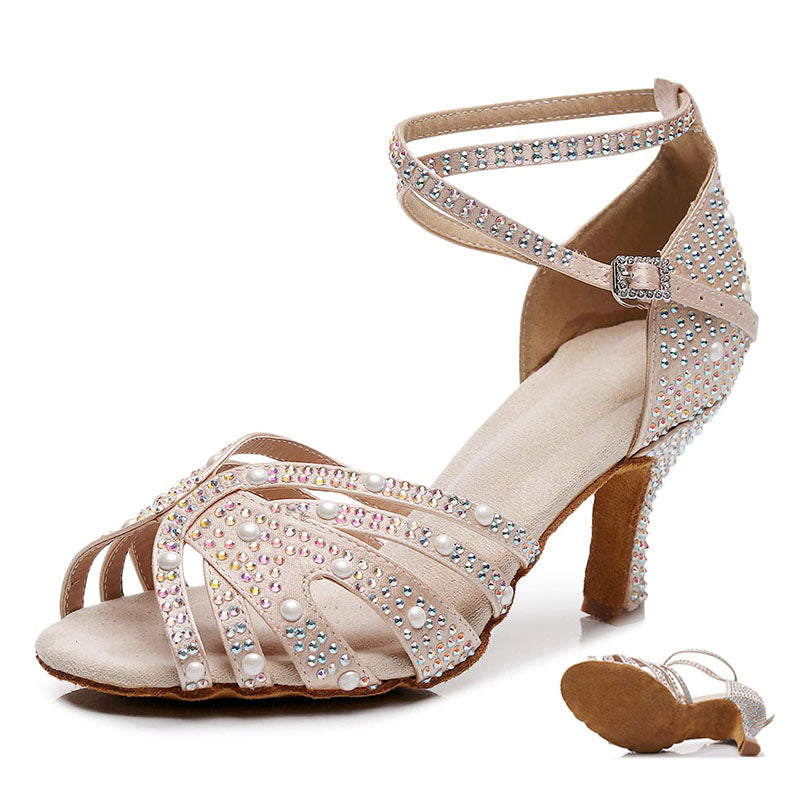 Women's Satin Customized Heel Latin Shoes Salsa Shoes Ballroom Dance Shoes With Rhinestone