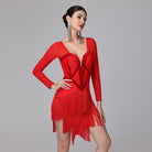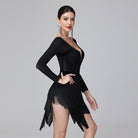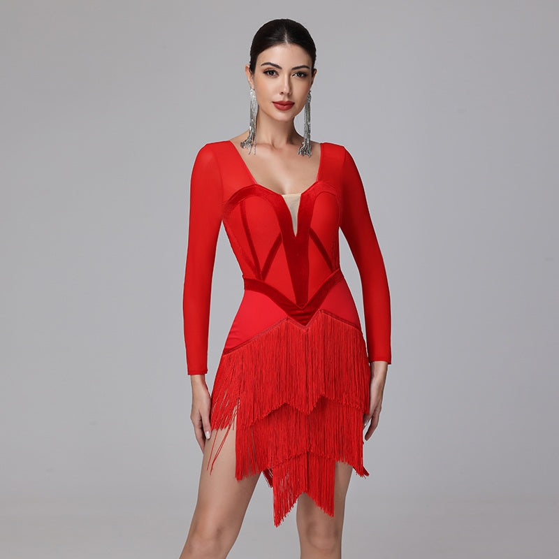 YZY Customisable-Women's Long Sleeve Tassel DanceWear Dance Dress Performance Wear