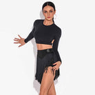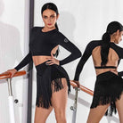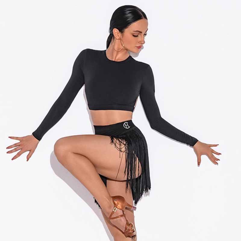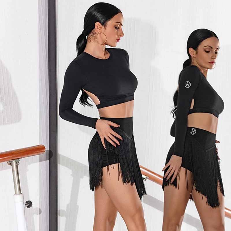 HC Women's Black Backless Latin Dance Tops Dance Wear Training Performance Tops