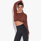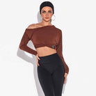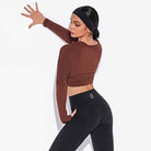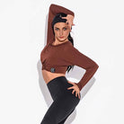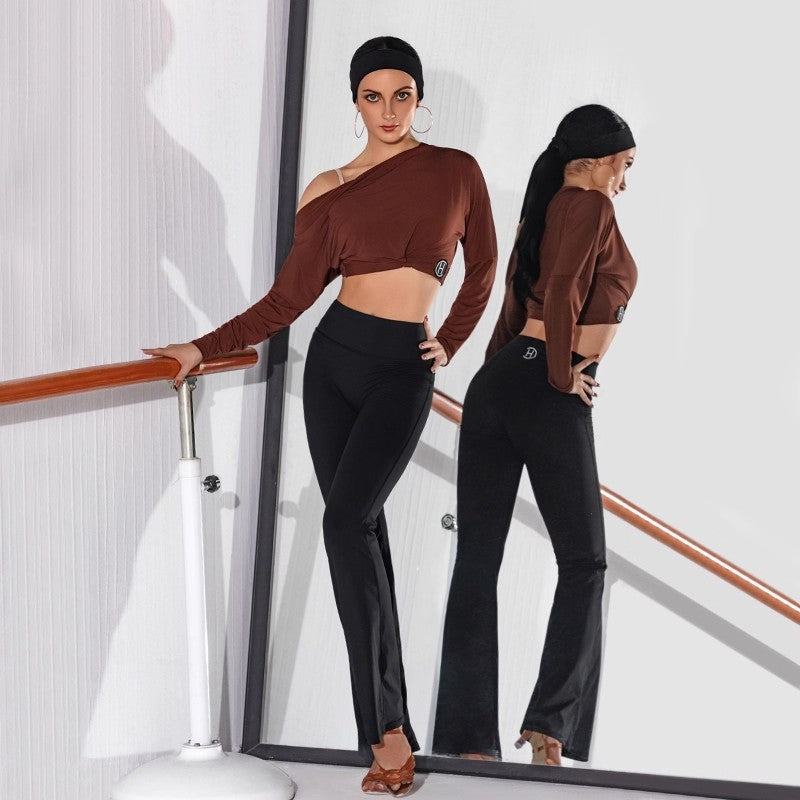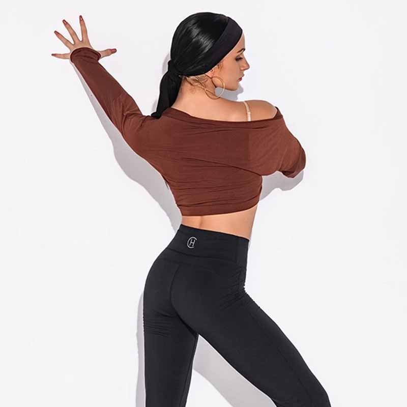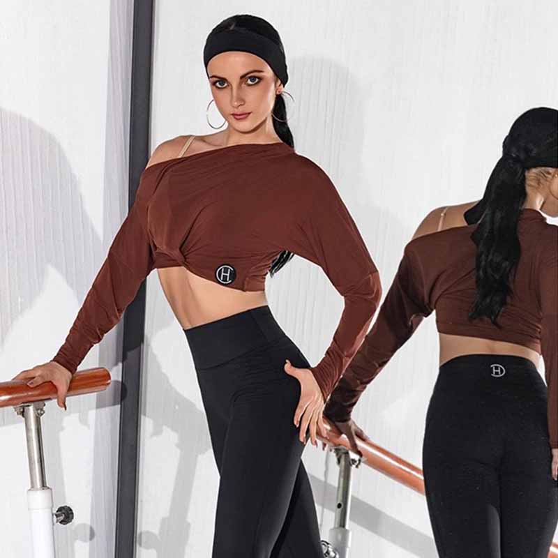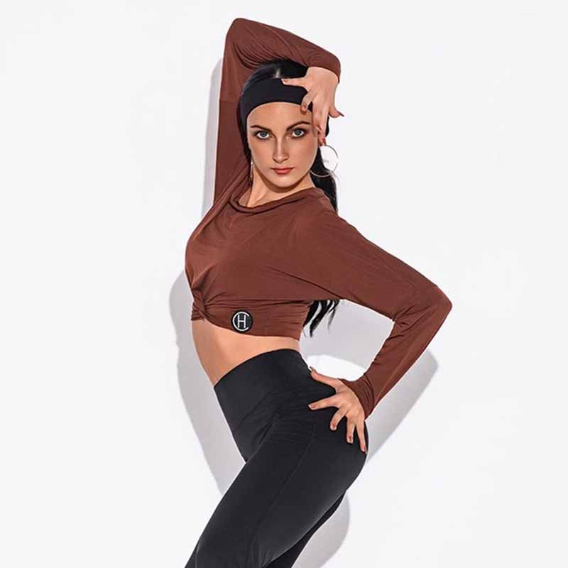 HC Women's Long Sleeve Latin Dance Tops Dance Wear Training Performance Tops(With Headband)