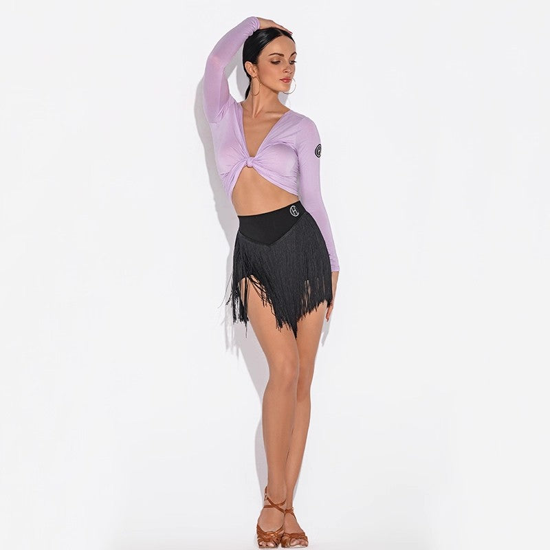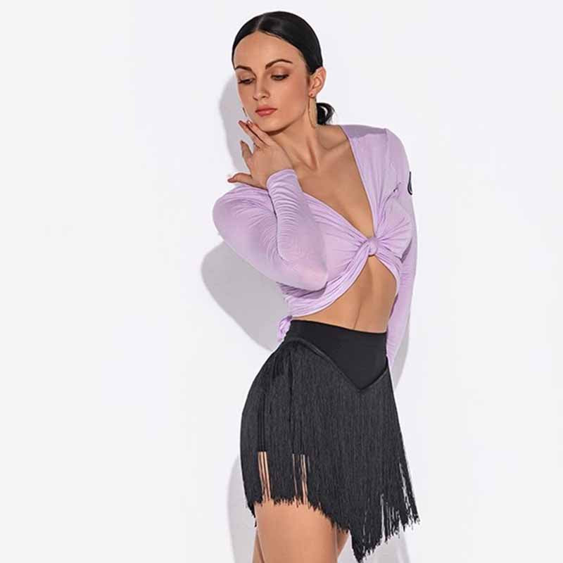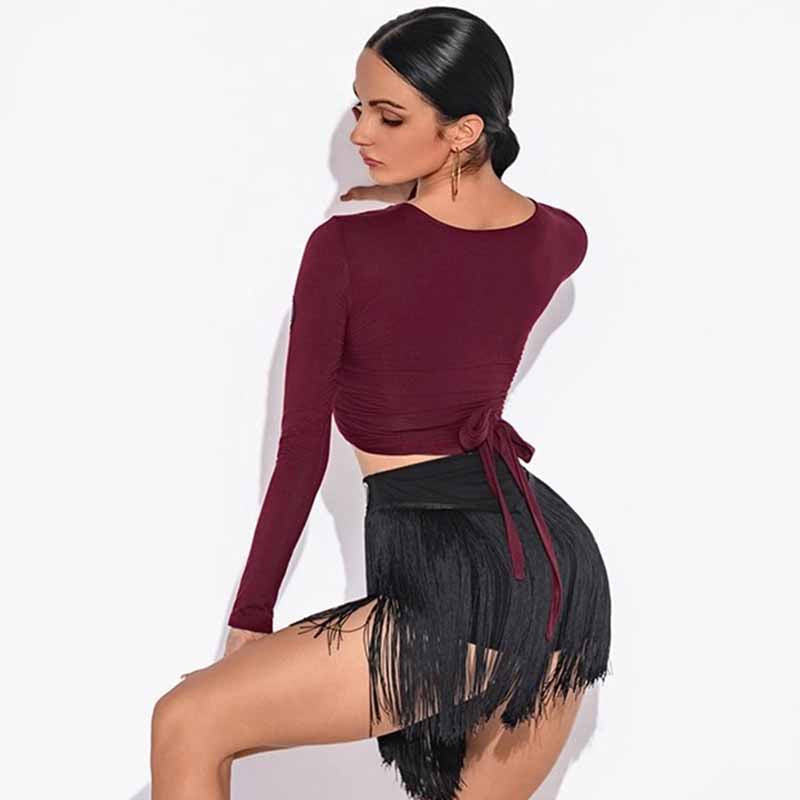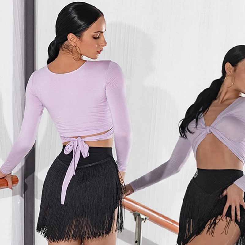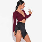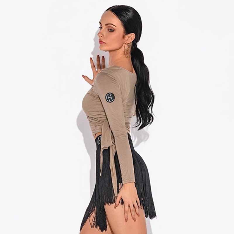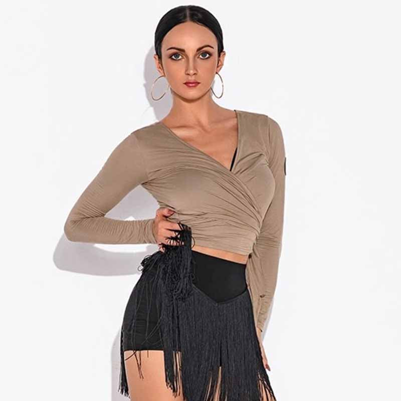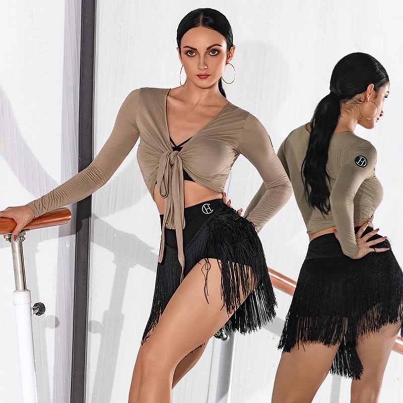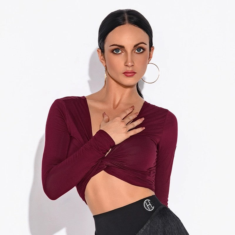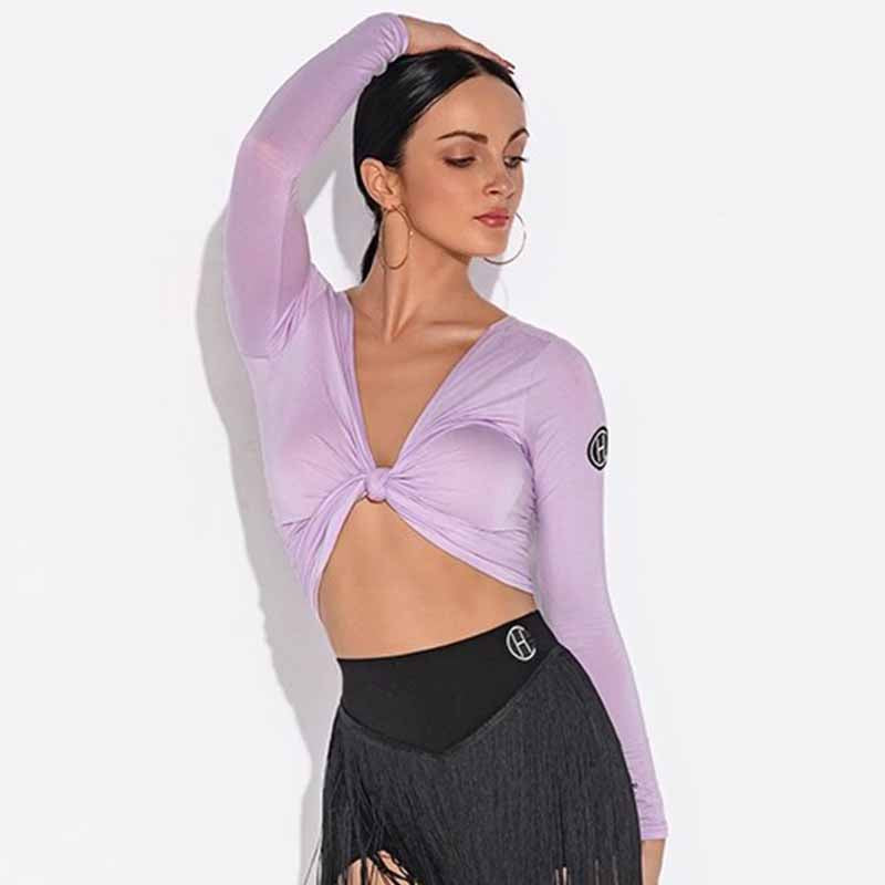 HC Women's V Neck Long Sleeve Latin Dance Tops Dance Wear Training Performance Tops