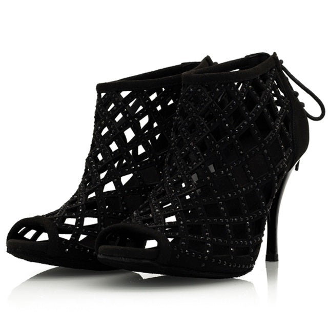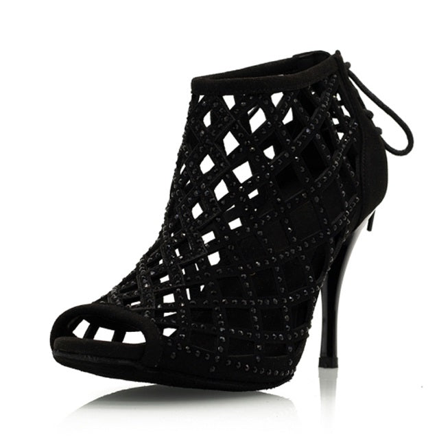 DS Women's Suede Crystal Customized Heel Dance Boots Salsa Shoes Ballroom Dance Shoes