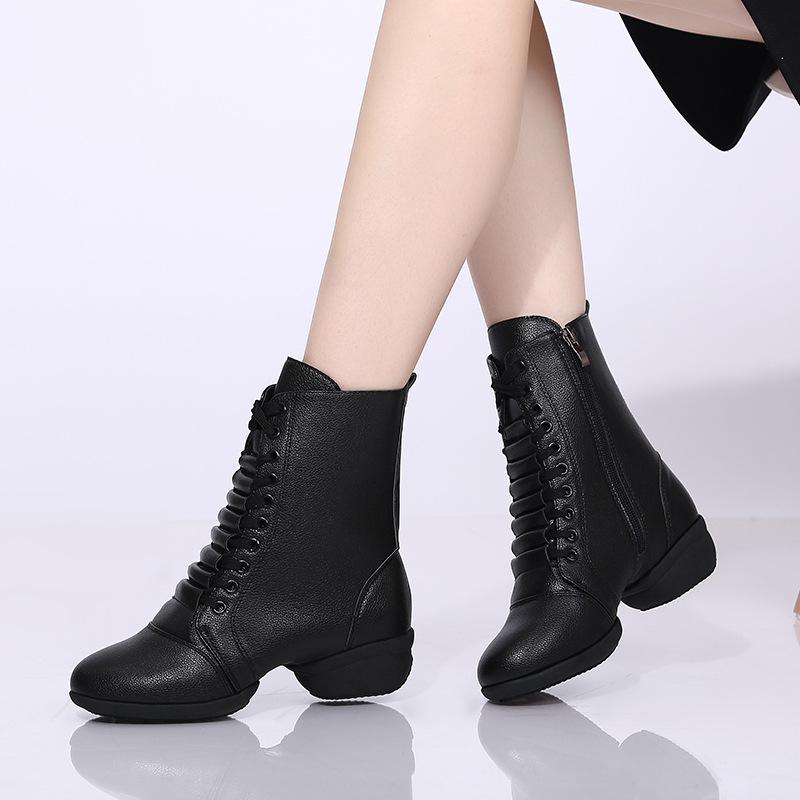 Zapatos de baile de mujer de piel sintética con tacón de 4 cm y cordones, zapatos de jazz