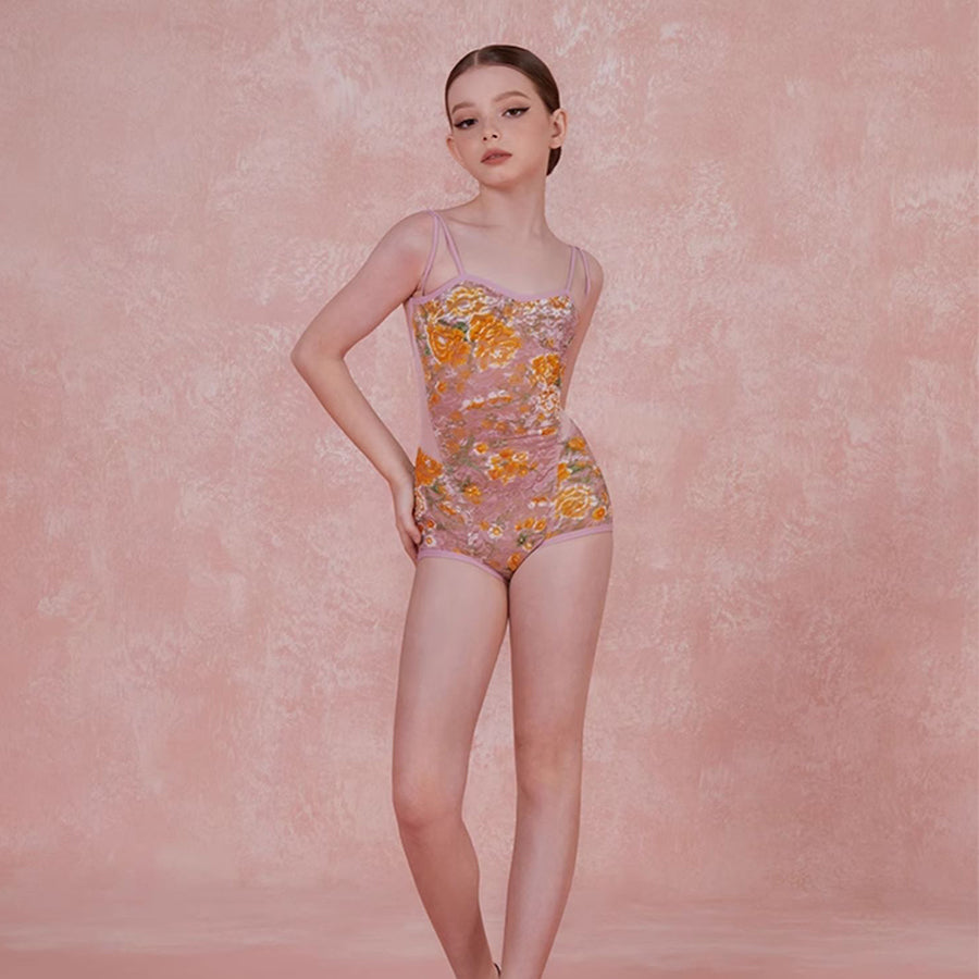 Body de práctica de baile sin espalda con encaje para niñas Z
