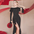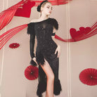 Vestido de baile latino negro para mujer YJFY, ropa de baile, vestido de entrenamiento y actuación