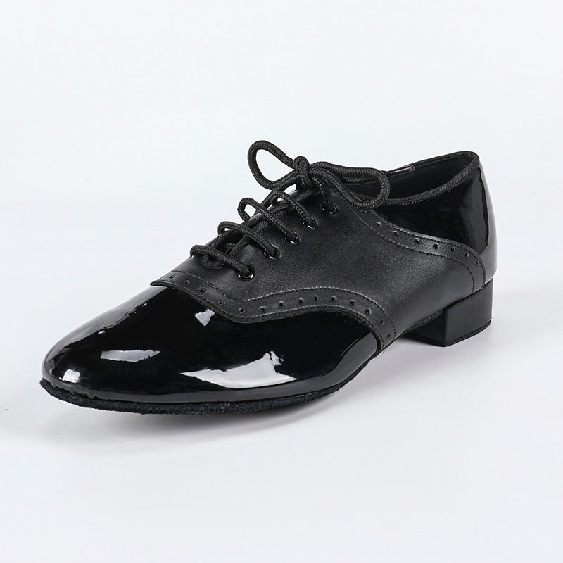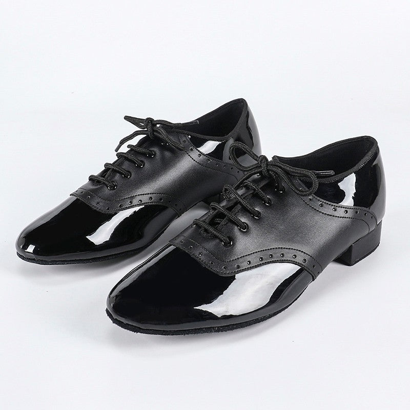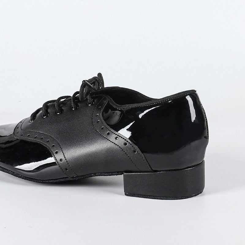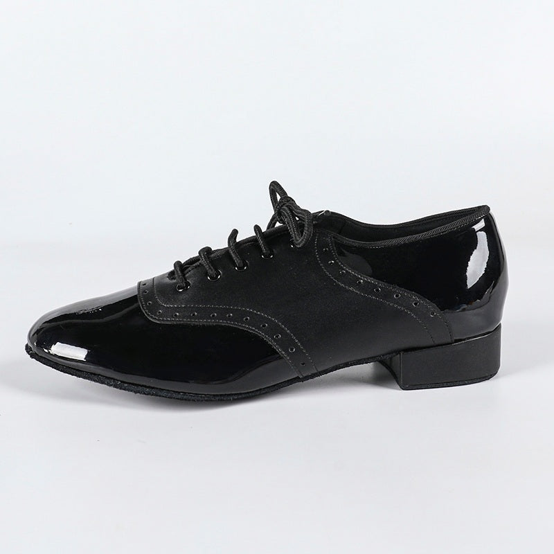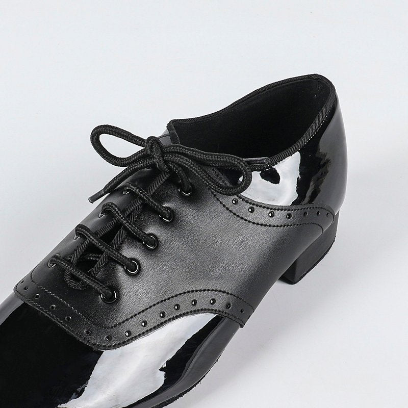 Zapatos de baile de salón para hombre, tacón de 2 cm, de piel sintética negra.