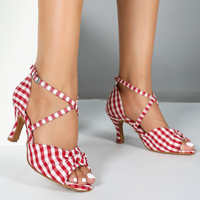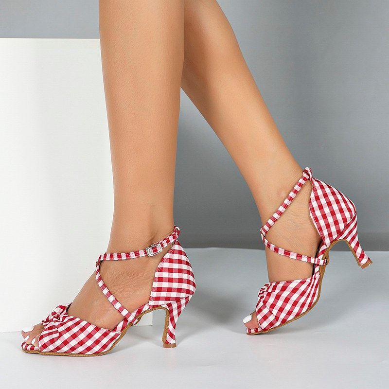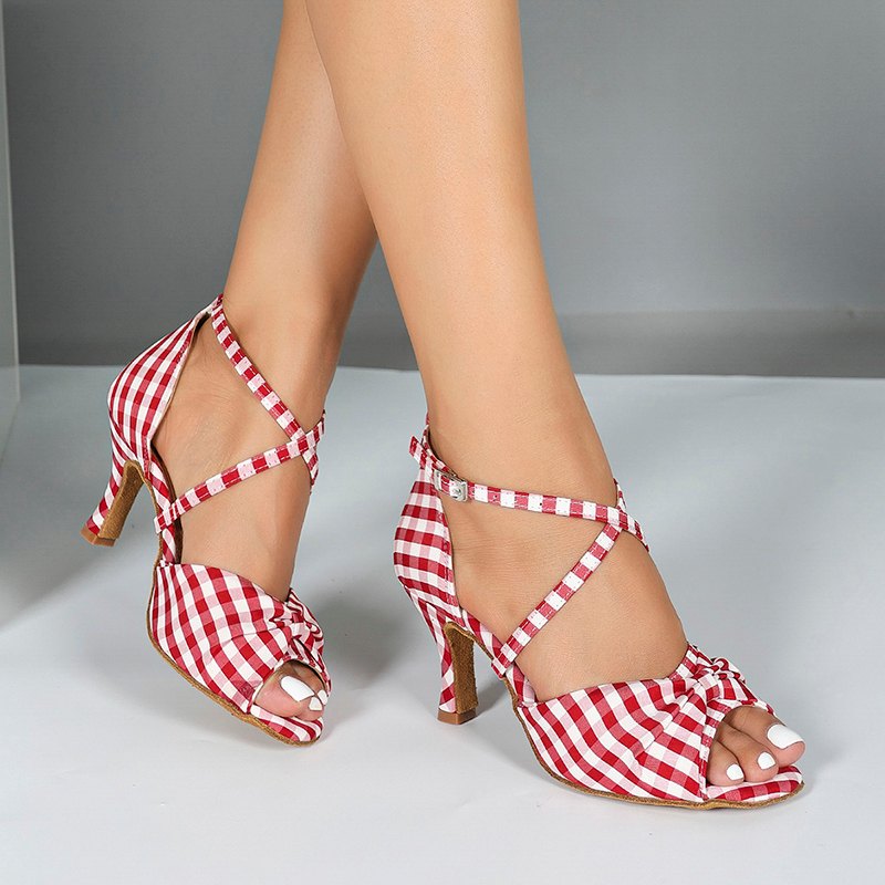 Zapatos de baile latino para mujer con tacón rojo personalizado y zapatos de baile de salón