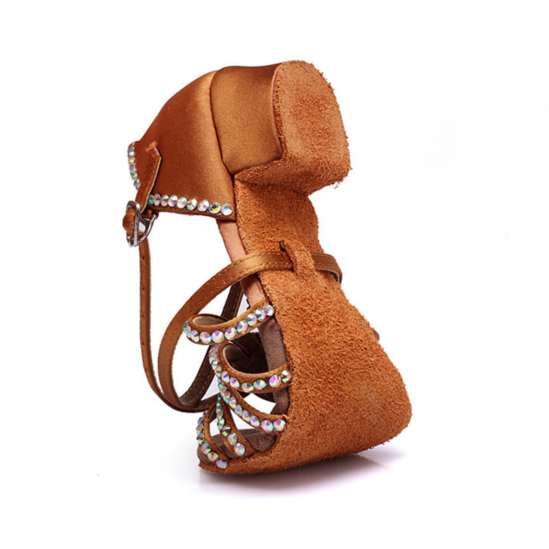 Zapatos de baile latino personalizados con tacón de satén y diamantes de imitación azules para mujer