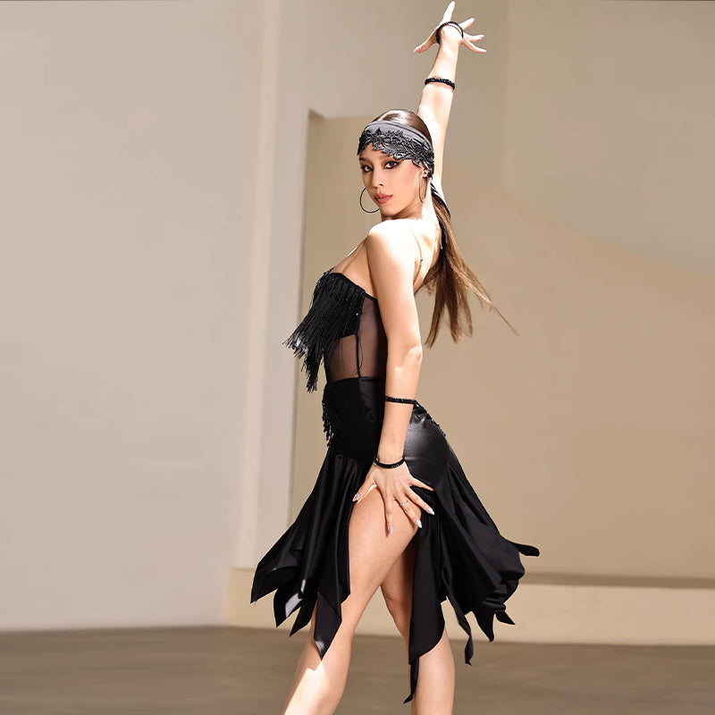 Vestido de baile con borlas de tela de seda de leche para mujer Z Vestido de baile para entrenamiento y actuación