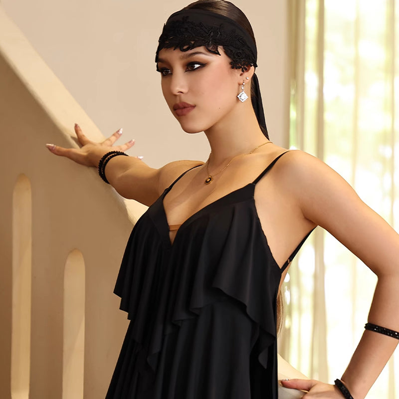 Vestidos de baile negros con escote en V personalizables para mujer de TID Ropa de baile de competición de rendimiento