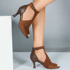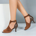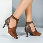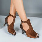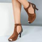 Botas de baile DS para mujer, de ante sintético, con tacón personalizado y suela de ante.