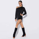 HC Tops de baile latino con cuello en V y manga larga de leopardo para mujer, ropa de baile, mono de entrenamiento para actuación (copia)