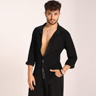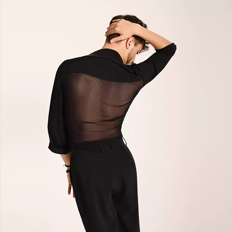 Camisetas negras de manga larga para hombre, ideales para baile latino.