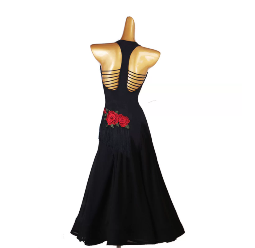 Vestido de baile de salón con escote en V negro personalizable para mujer
