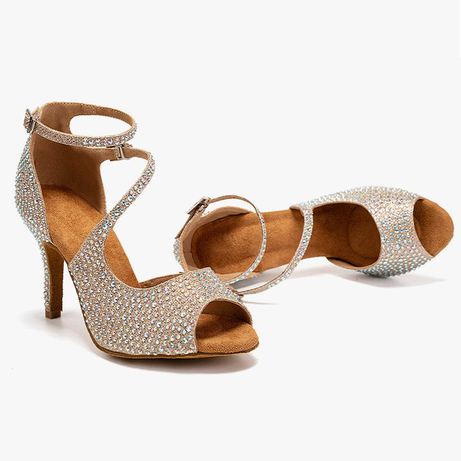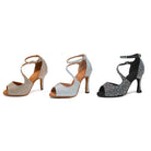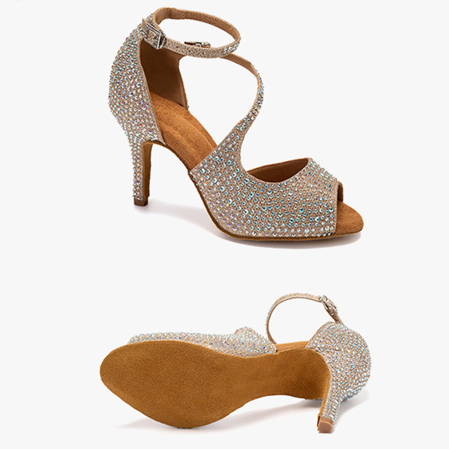 Zapatos de baile de salón personalizados con tacón de aguja y purpurina brillante para mujer