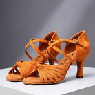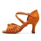 Zapatos de baile latino de salón con tiras en el tobillo de 6,5 cm/7,5 cm de ante marrón para mujer de KCDANCE