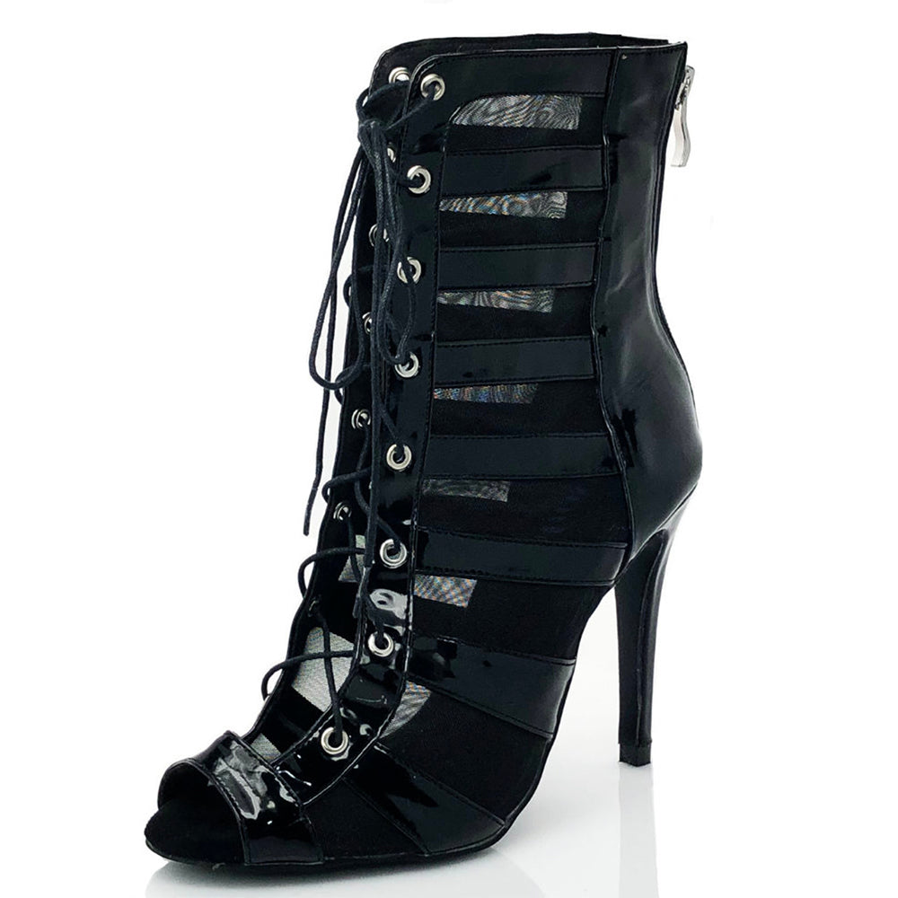 Botas de baile ALB para mujer, personalizadas, de piel vegana, con cordones y suela de goma, para jazz, salsa y baile callejero.