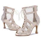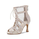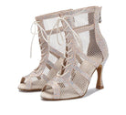 Botas de baile con tacón personalizado de satén color rosa carne para mujer, zapatos para bailar salsa y jazz