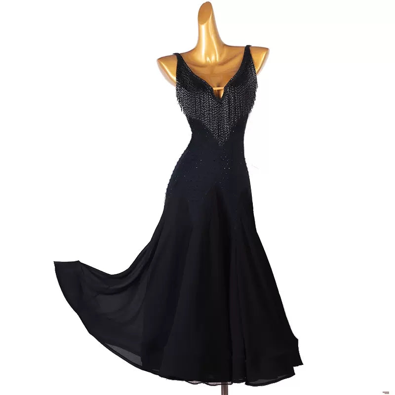 Vestido de baile de salón con escote en V negro personalizable para mujer