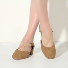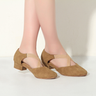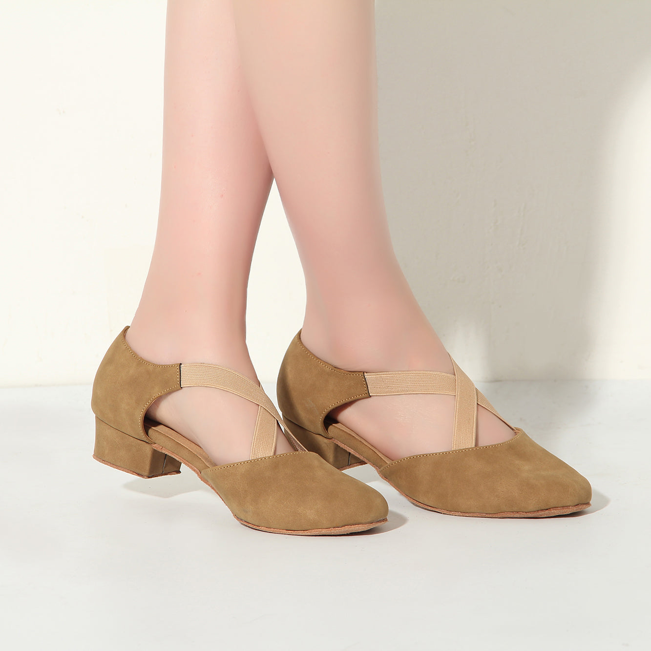 Zapatos de baile de salón de gamuza color albaricoque con tacón de 3,5 cm para mujer