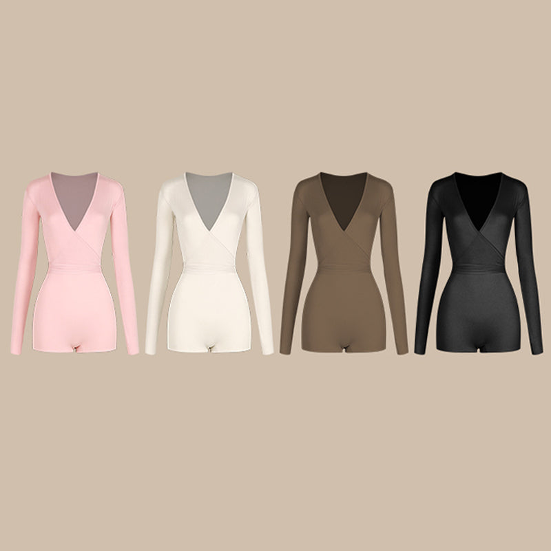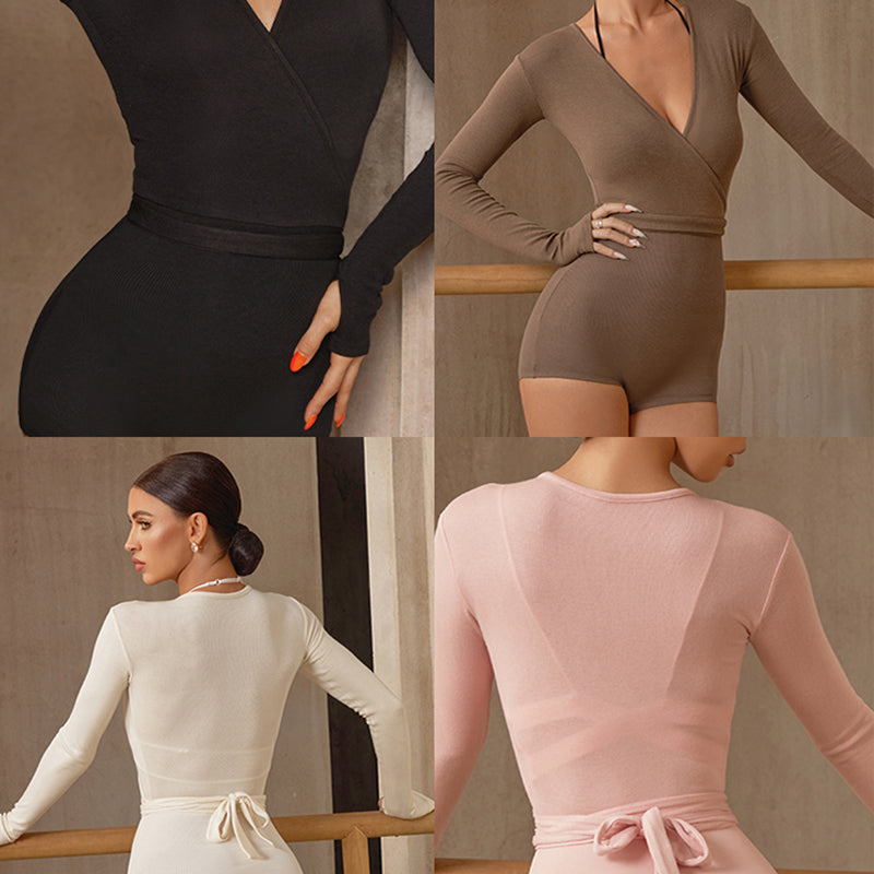 Justaucorps de danse à manches longues et col en V pour femme Z