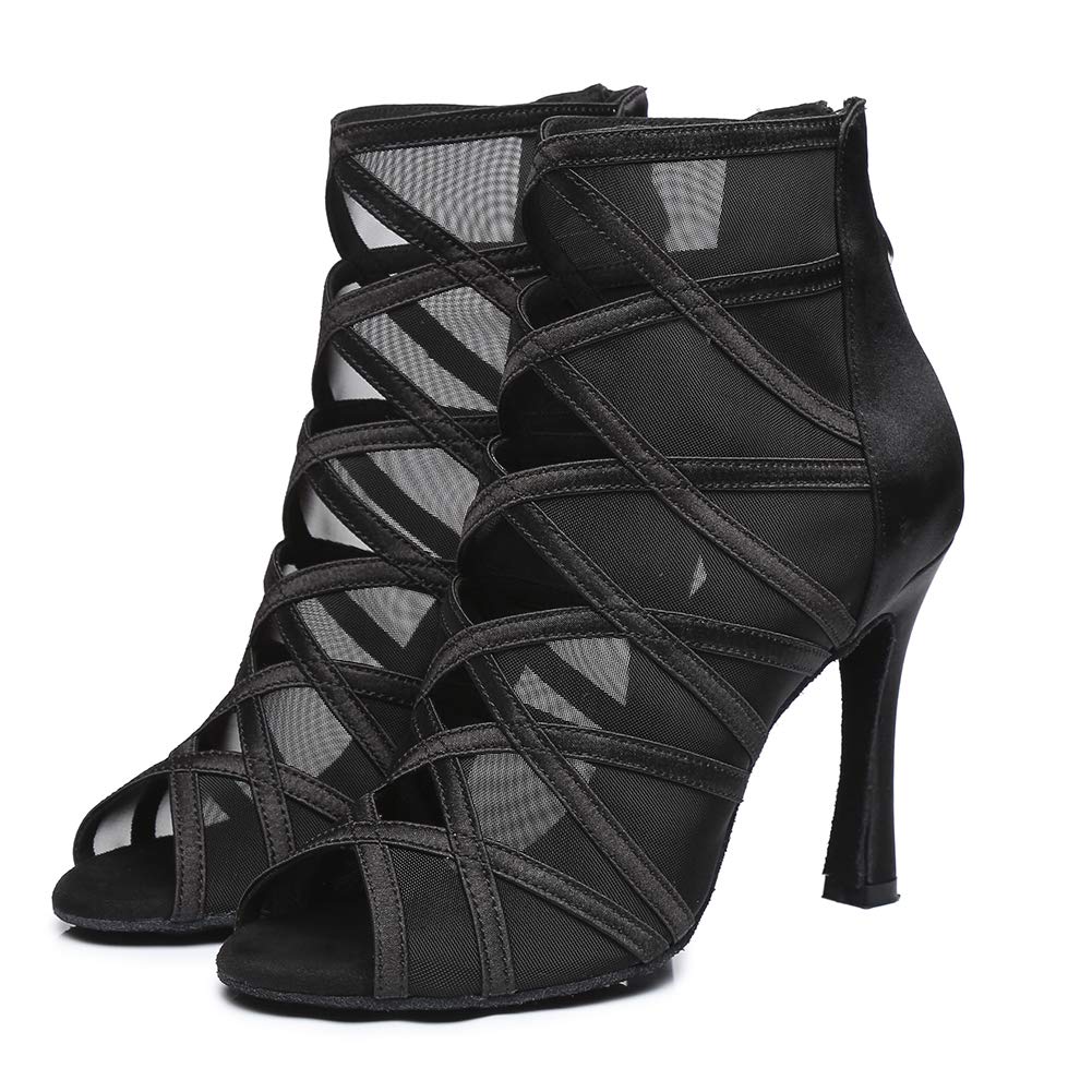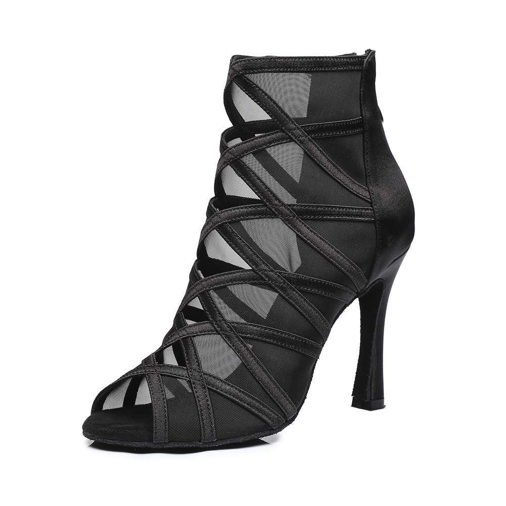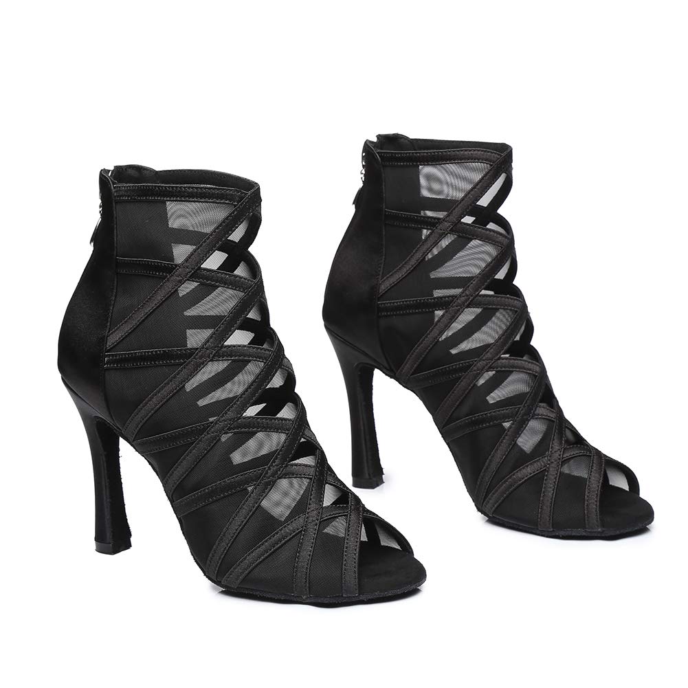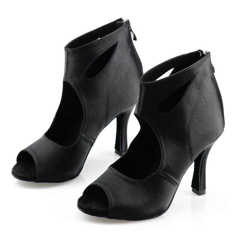 Chaussures de danse de salon à talons personnalisés en satin noir pour femmes HW