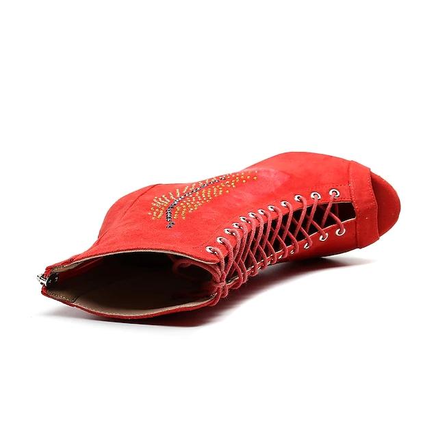 DS Women's Red Rubber Sole Talons personnalisés Bottes de danse Jazz Salsa Street Sole Dancing Chaussures