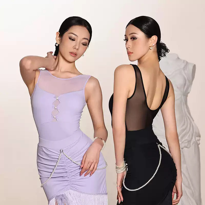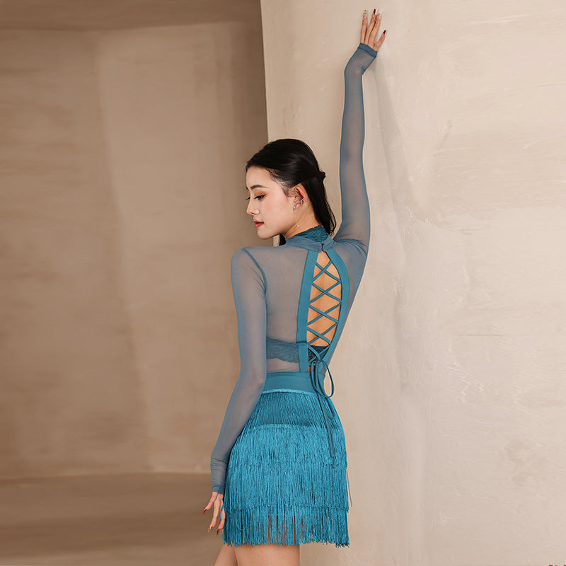 Z Women's Long Manches Latin Practice Dance Wear Dance Bodys BodySitards