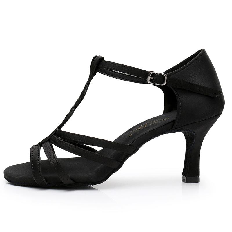 Chaussures de danse latine à lanières et talon en T pour femmes, en satin, personnalisées, chaussures de danse de salon