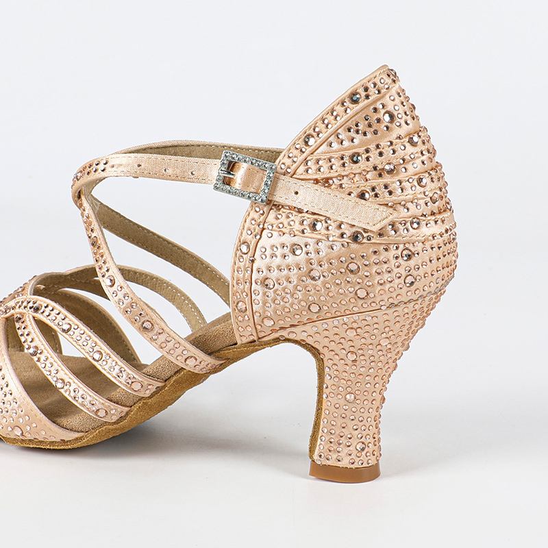 Chaussures de danse latine à talons personnalisés en satin et strass pour femmes DS