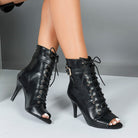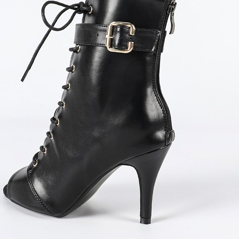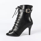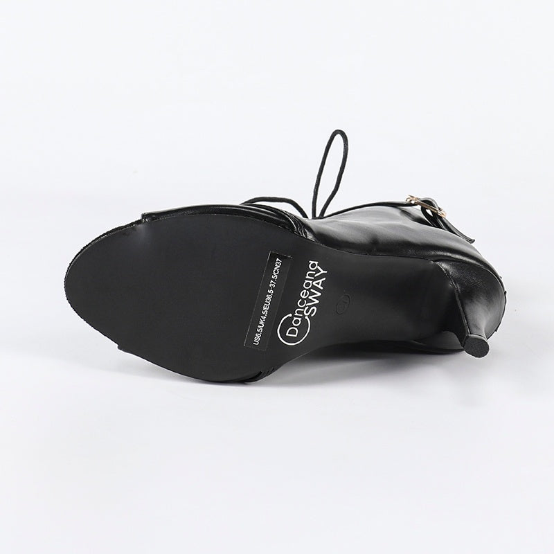 Chaussures de danse à talons ouverts pour femme DS, noires, 7 cm/9 cm, semelle en caoutchouc, similicuir, style jazz